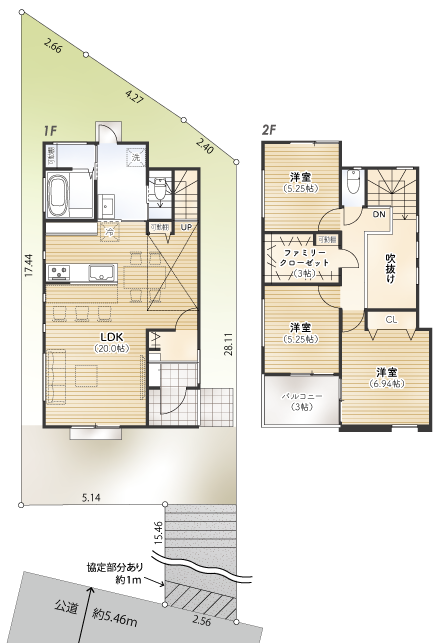 延床面積:93.88㎡(1F:約50.51㎡/2F:約43.37㎡)